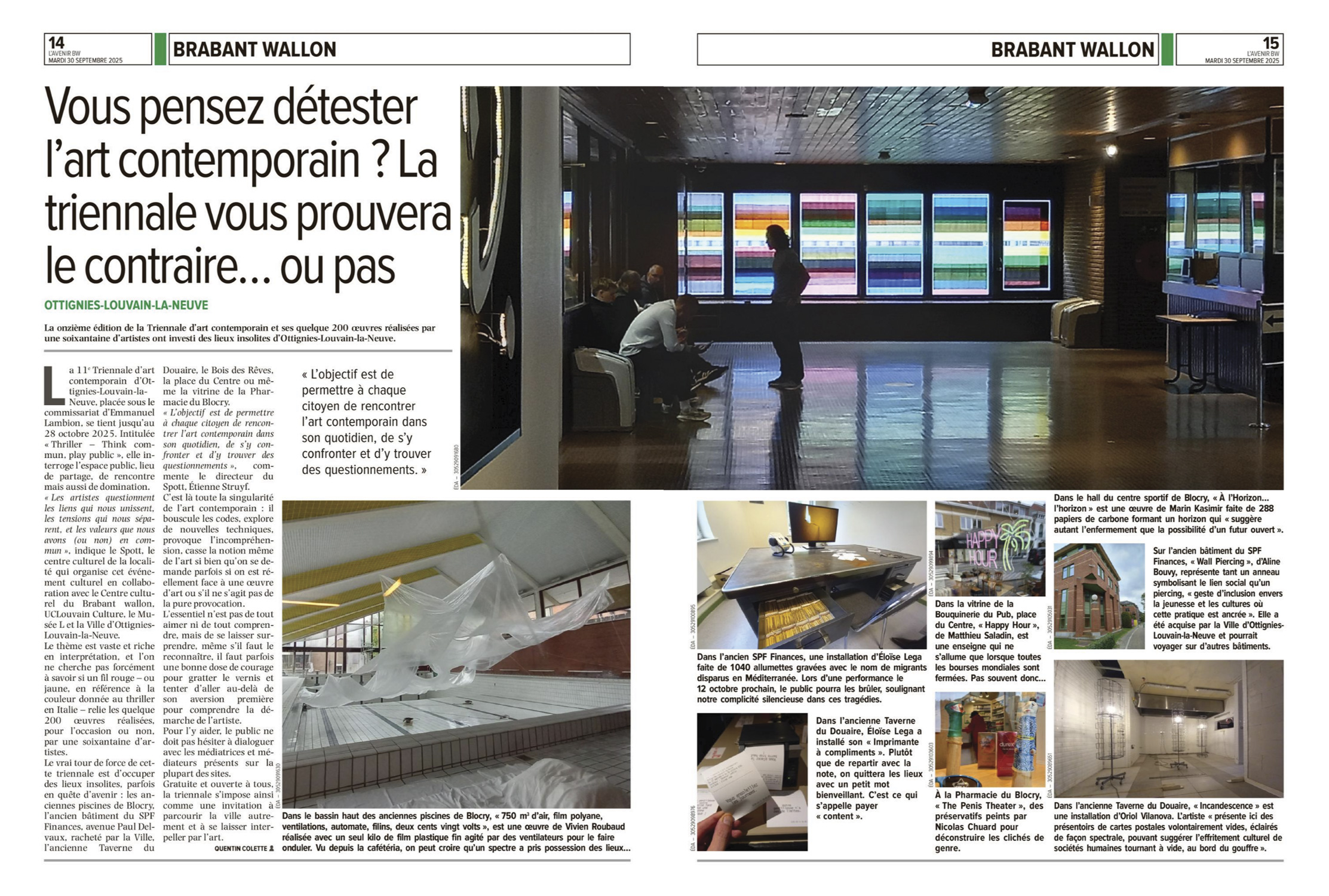 « Le formidable travail d'Eloïse Lega avec ses Allumettes dans lesquelles elle grave le nom et les informations qu'elle possède à propos de migrants morts durant leur périble, l'installation in situ de Yoël Pytowski [...] »