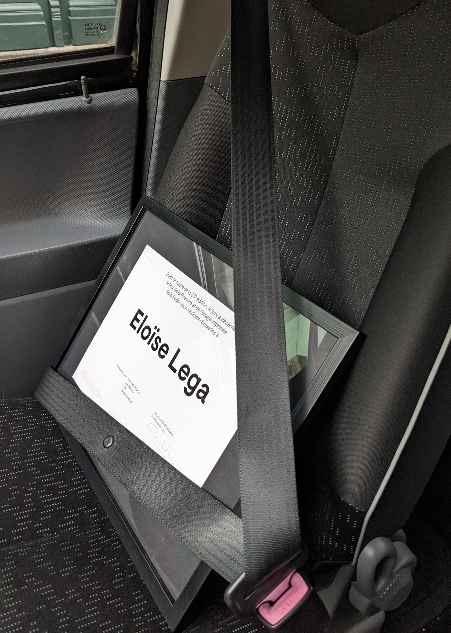 « La première lauréate [ArtContest2021], l'artiste belge Eloïse Lega, a 25 ans. Elle a étudié la gravure et les arts numériques et enseigne aujourd'hui des matières artistiques. Elle crée une oeuvre plastique sensible traversée par une attention à l'humain, engagé dans la vie fragile et éphémère ou entravé dans une libre circulation par les barrière et les frontières.»