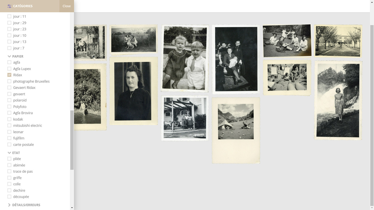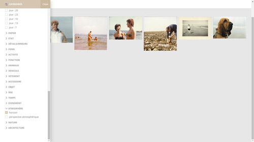 certains sérieux et classique comme on pourrait trouver dans une base de données photographique : format, cadrage, couleur ou noir et blanc, portrait ou paysage, les marques des papiers photos...